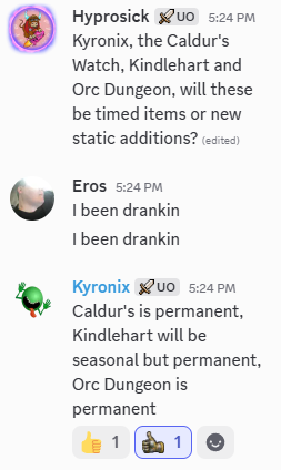 This forum is tied directly to this site.  Do we use our UO sign in to log into discord, NO.  Will they put a direct link on the UO Site to go to Discord?