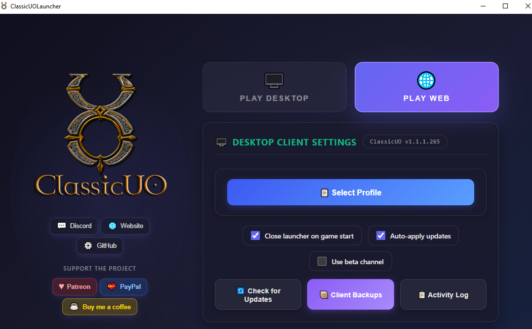I load this screen, then choose Play Web.