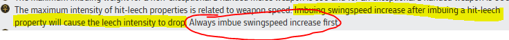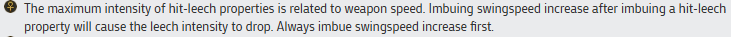 (yes in your case/example it added confusion saying:"faster weapon have lower leech" cuz of the 61% hardcap you experienced or like the fact it saying imbuing/imbue and NOT enhancing on the wiki.. but let's not play dumb pls and look:)