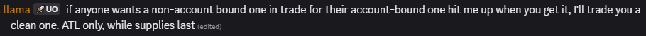 Odd though that the Piece i was wearing that was deleted accidentally did not have this stipulation attached. It could be freely traded amongst accounts and buyers. Could we please know why this happened, what caused the exact issue?